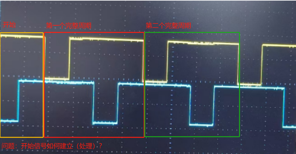 问题描述:设定了能产生理想刹车窗口的一组固定参数(周期T、占空比D_A、D_B、相位差Φ)。但当PWM外设从空闲状态首次使能时,其计数器从0开始计数,生成的第一个脉冲波形必然不完整,无法形成预设的相位关系与刹车窗口。这导致启动瞬间或方向切换后的首个周期出现控制“盲区”。