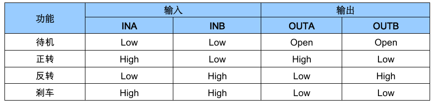 重新审视电机驱动芯片数据手册时,我们发现LN8503ER的输入信号逻辑定义了四种状态。